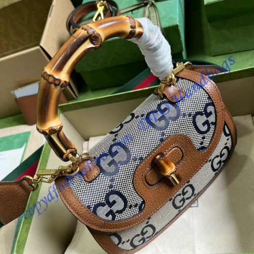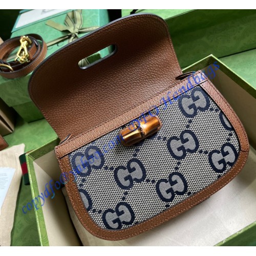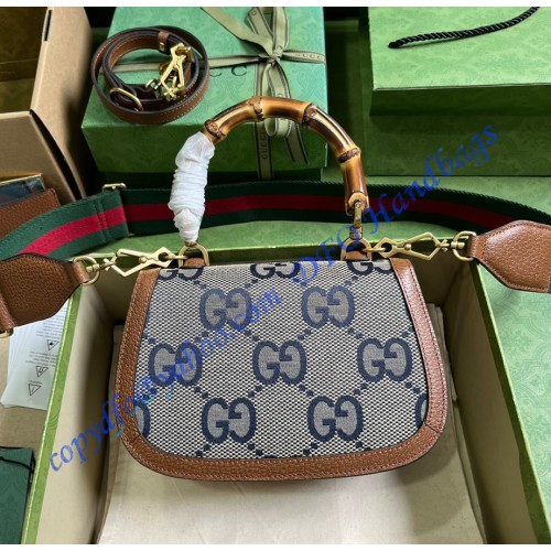 Gucci Bamboo 1947 Jumbo GG Small Top Handle Bag GU675797C-blue-brown
