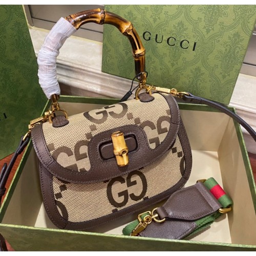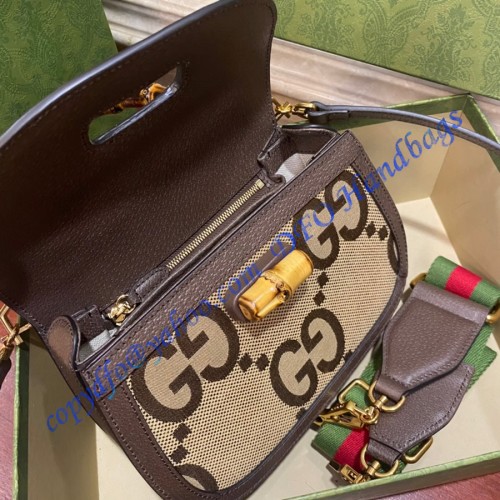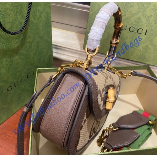 Gucci Bamboo 1947 Jumbo GG Small Top Handle Bag GU675797C-brown