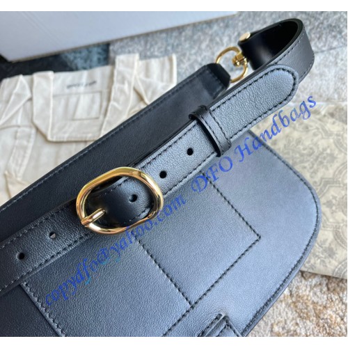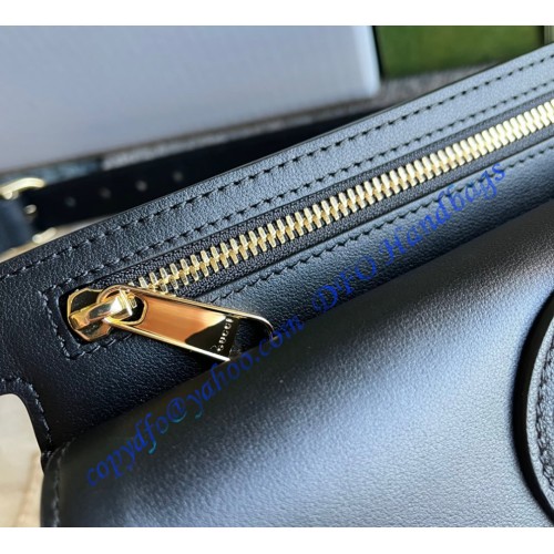 The Blondie hardware, a geometrically shaped version of the Interlocking G logo, continues as part of Exquisite Gucci. The gold-toned buckle adds a refined vintage feel to this new belt bag style in black leather, while the zip compartment reflects a modern versatility.