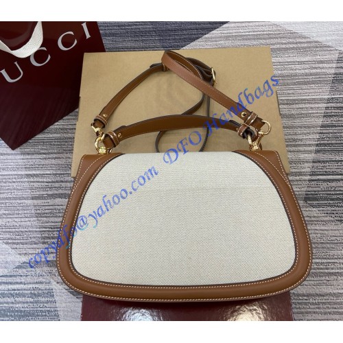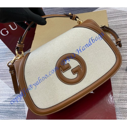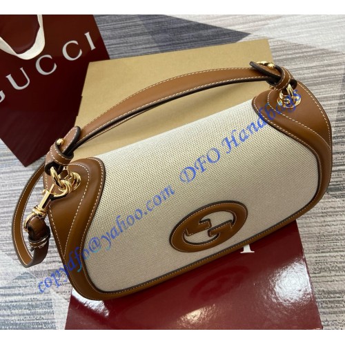 The new Gucci Blondie bag, whose distinctive logo first appeared in the House’s collections in the early 1970s, weaves together past and present in a fusion of nostalgia and modernity. This medium top handle bag with a detachable and adjustable leather shoulder strap is crafted from natural canvas.