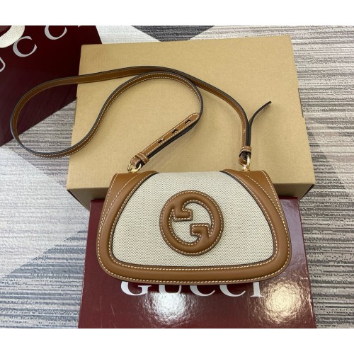 The new Gucci Blondie bag, whose distinctive logo first appeared in the House’s collections in the early 1970s, weaves together past and present in a fusion of nostalgia and modernity. This mini shoulder bag with an adjustable shoulder strap is crafted from natural canvas.
