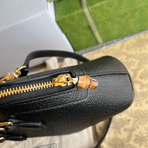 Combining recognisable elements of the House, the mini tote bag is defined by its bamboo handles and Double G hardware. Crafted from white leather, the accessory is further accentuated by two bands, a playful reference to the bands used to keep handles in shape.