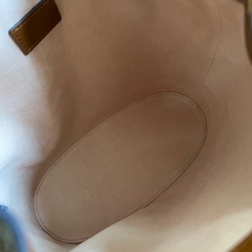 Combining recognizable elements of the House, the small bucket bag is defined by its bamboo handles and Double G hardware. Crafted from black leather, the accessory is further accentuated by a decorative leather belt, a playful reference to the bands used to keep handles in shape.