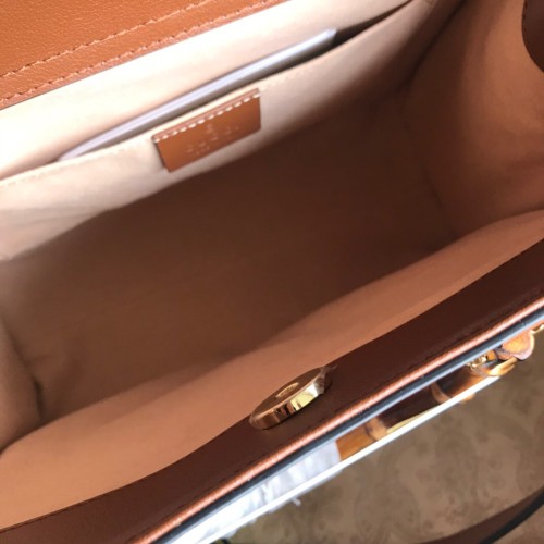 The concept of reinvention continues to shape the House's designs. An evolution of a bamboo handle tote first introduced in 1991, the Gucci Diana represents the notion of style in constant evolution. The design plays with traditional details and renews them new meaning. Playing with this idea, the functional bands used to keep bamboo handles in shape are reimagined as playful leather belts.