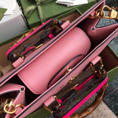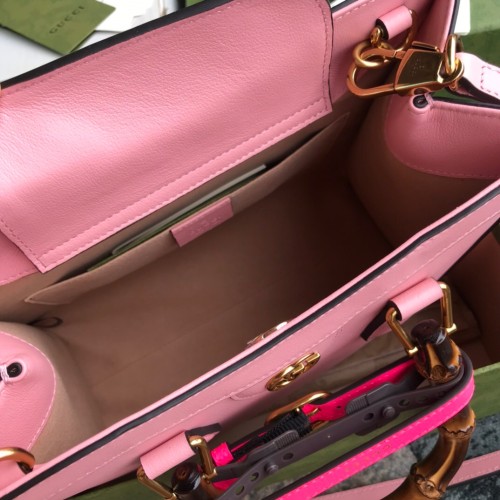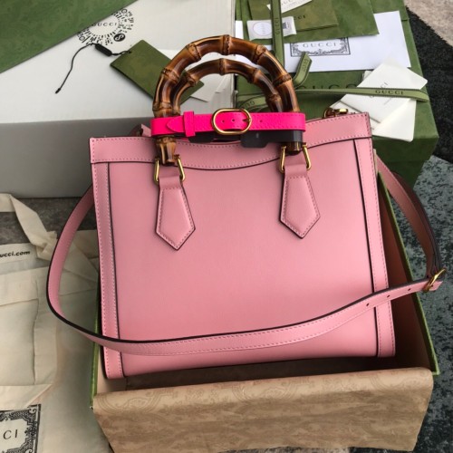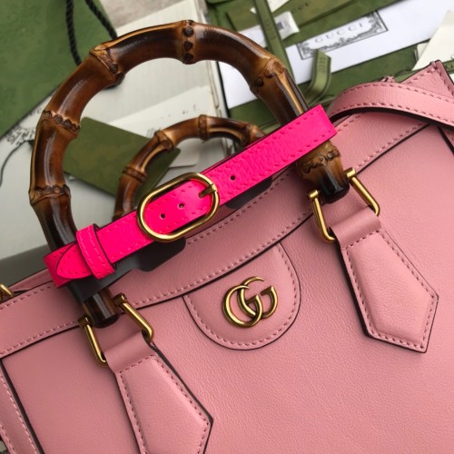 The concept of reinvention continues to shape the House's designs. An evolution of a bamboo handle tote first introduced in 1991, the Gucci Diana represents the notion of style in constant evolution. The design plays with traditional details and renews them new meaning. Playing with this idea, the functional bands used to keep bamboo handles in shape are reimagined as playful leather belts.
