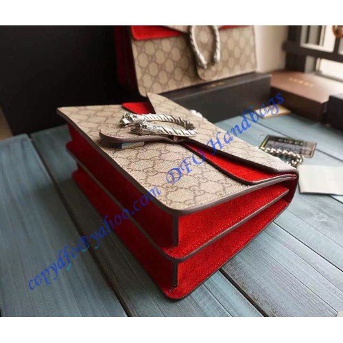 Gucci Dionysus GG Supreme Medium Shoulder Bag with Red Suede Detail