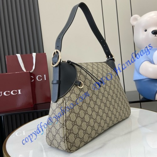 The new GG Emblem collection reinterprets the House’s history of elegance and craftsmanship. This large shoulder bag features numbered notches on the adjustable shoulder strap, inspired by the equestrian world.
