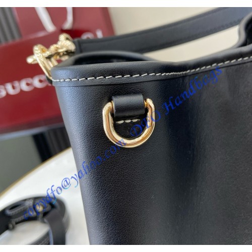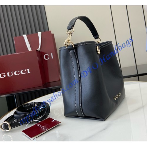 The new GG Emblem collection reinterprets the House’s history of elegance and craftsmanship. This bucket bag highlights functional design with an interior compartment.