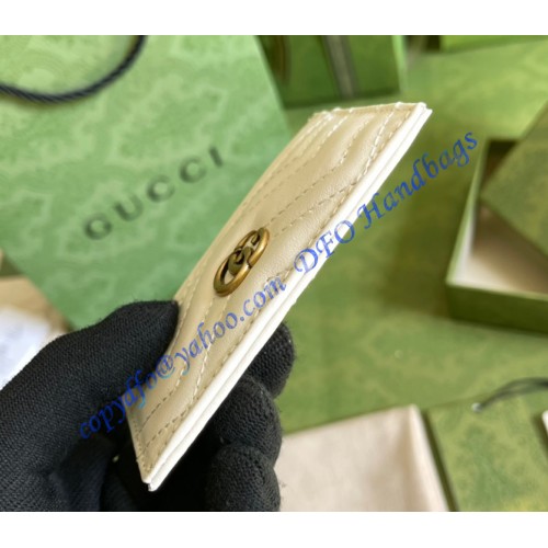 The GG Marmont collection is defined by the emblematic Double G hardware—a contemporary take on a Gucci archival belt buckle from the '70s that has become a hallmark of the House. The card case is crafted in soft matelassé leather that coordinates with bags of the collection.