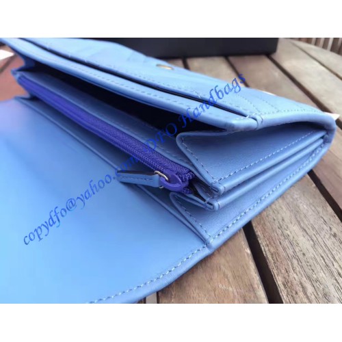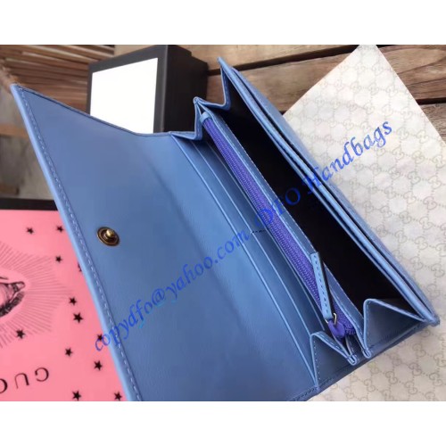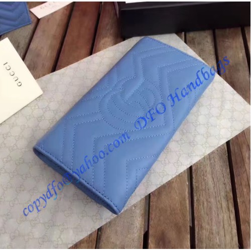 Gucci GG Marmont continental wallet in Blue leather with a chevron design