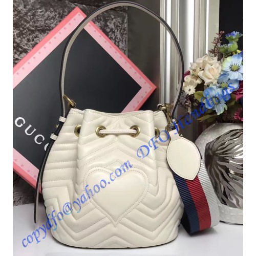 Gucci GG Marmont Quilted Leather Bucket Bag White