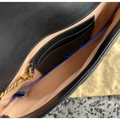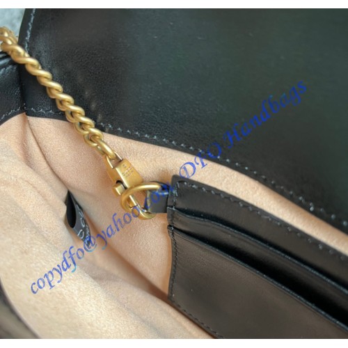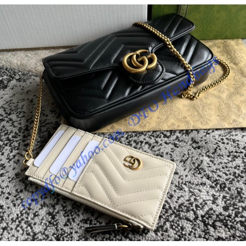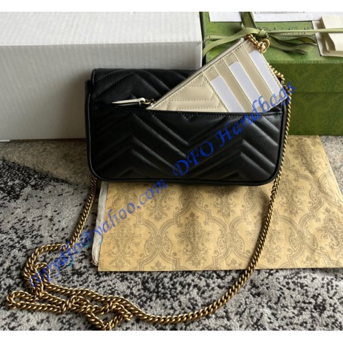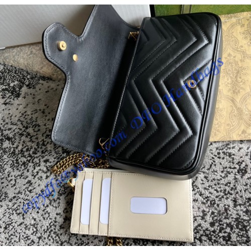 The Double G hardware brings the past into the House's present with the notion that a cherished wardrobe is enriched by items that can be worn season after season. This mini bag with a chain strap is crafted from the signature matelassé chevron leather in black, while the inside features a contrasting white leather card case that can be detached.