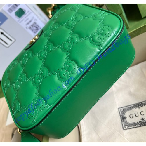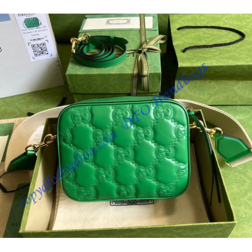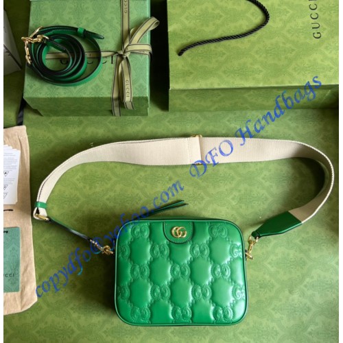 Matelassé leather continues to come to the fore of the Creative Director's designs in new and unique ways each season. With a super soft finish, the signature material is reimagined once again as a part of Gucci Love Parade with a textured geometric motif. The design presents a contemporary approach to the '90s logo trend that appears throughout the House's latest collections. Here, it enriches a rectangular shoulder bag in green.