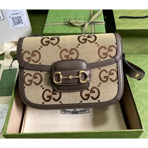Gucci GG Supreme Horsebit 1955 shoulder bag GU602204CC-brown