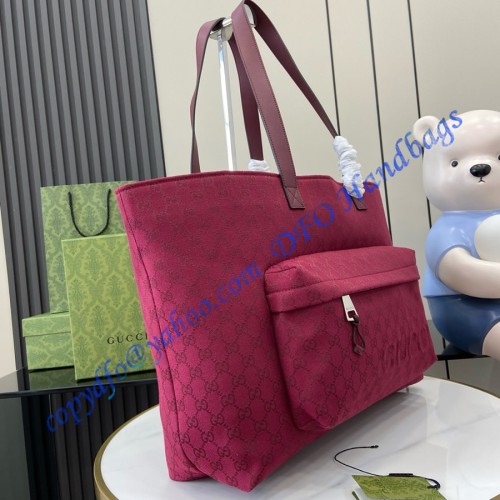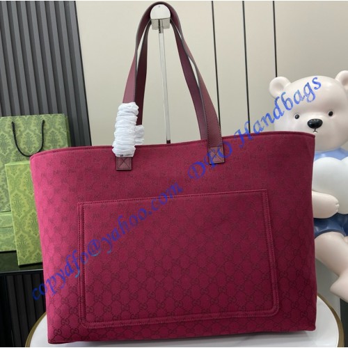 Signature pieces appear in the men's Fall Winter collection with a sporty attitude. Crafted from the Original GG canvas, timeless shapes and color palettes convey a contemporary mood through subtle details, such as the Web and embossed Gucci logo. This large tote bag, in Rosso Ancora red canvas, features multiple pockets and top handles.
