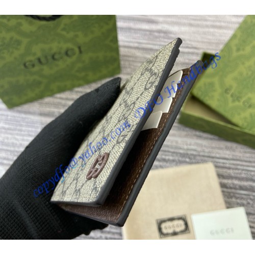 For the men's Fall Winter collection, signature small accessories are reintroduced in new colorways and combinations. Crafted from beige and ebony GG Supreme canvas, this wallet is enriched with brass hardware with a ceramic-effect finishing. The accessory features several card slots and bill compartments on the inside.