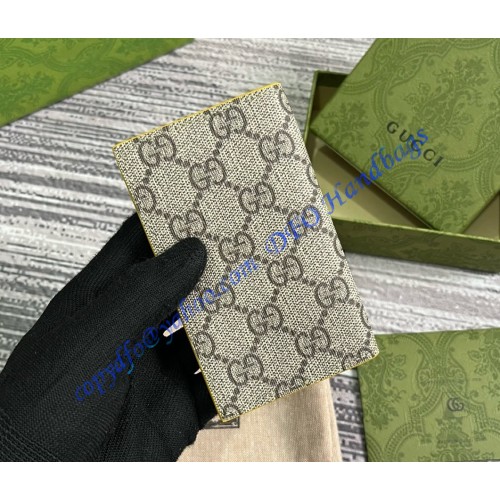 For the men's Fall Winter collection, signature small accessories are reintroduced in new colorways and combinations. Crafted from beige and ebony GG Supreme canvas, this long card case is enriched with brass hardware with a ceramic-effect finishing. The accessory features several card slots and compartments on the inside.