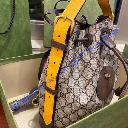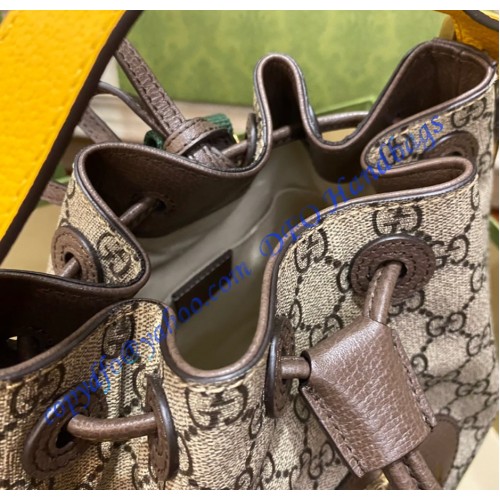 A drawstring backpack with a bucket shape made in soft GG Supreme, crafted from a coated microfibre fabric. The back shoulder straps come with a mechanism that allows them to be released and adjusted to be worn as a shoulder strap.