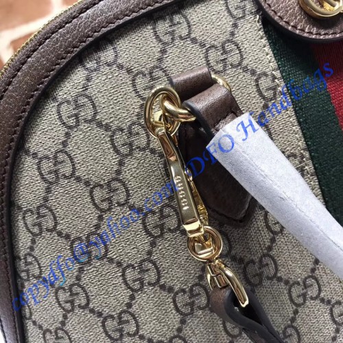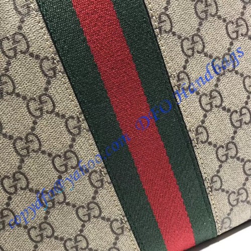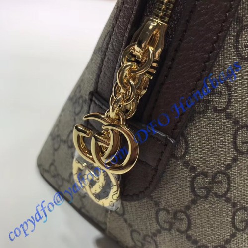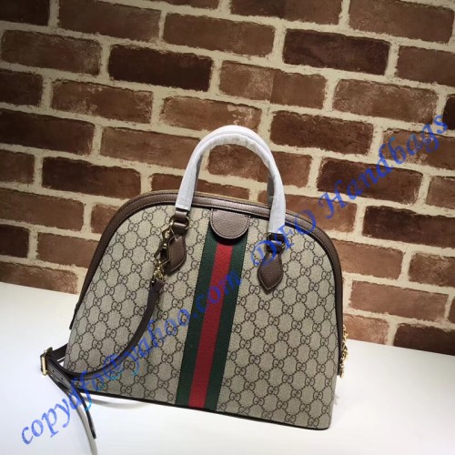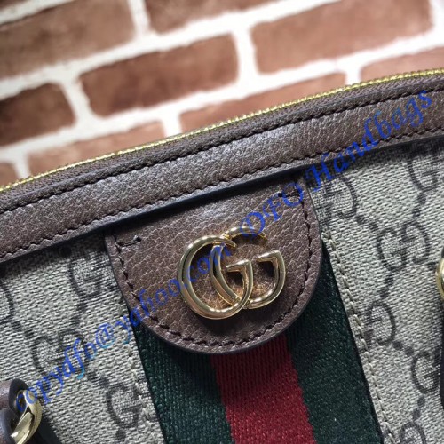 Ophidia GG Medium Top Handle Bag with Brown Leather Trim
