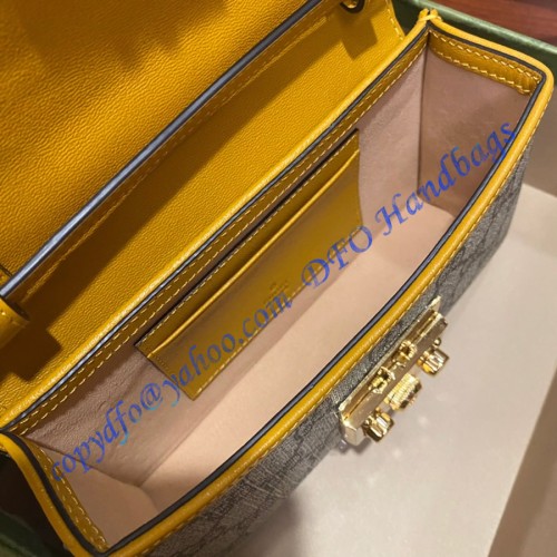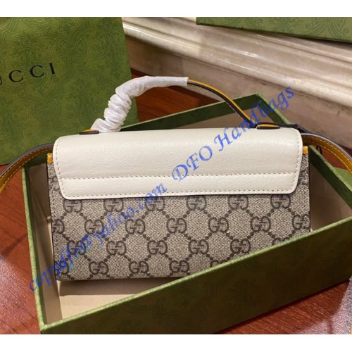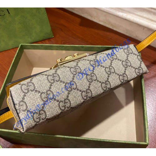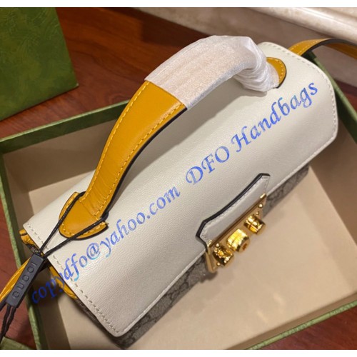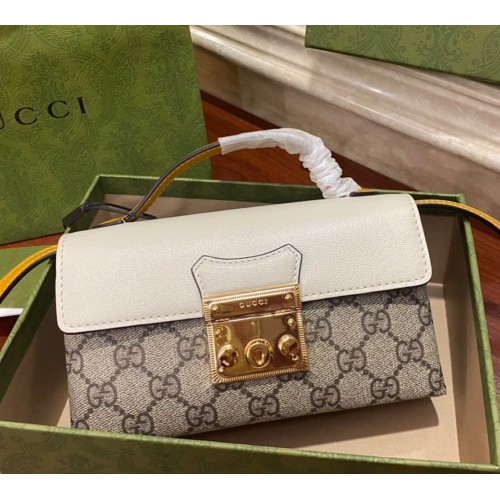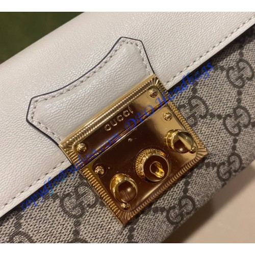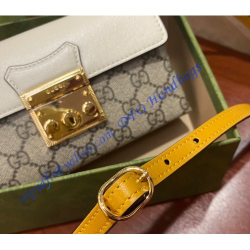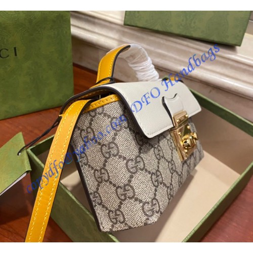 A mini version of the archival style, the Padlock is defined by its signature lock and key closure. The accessory is crafted from beige and ebony GG Supreme canvas with a white leather top. Adding a pop of colour, burnt orange leather details complete the mini bag.