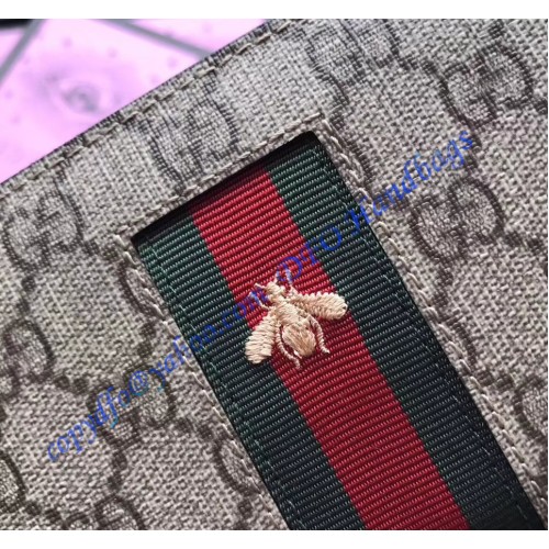 The first thing you are going to notice about this small and compact wallet is the bee motif. It has been among us since the 70s and it is one of the most popular motives commonly seen on Gucci creations. Beside it, we can also see impressive GG supreme canvas in beige and ebony colors. It has a low-environmental impact.