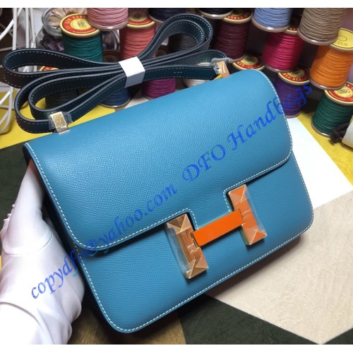 Hermes Lindy Constance 24cm H4423G-Bleu-Jean