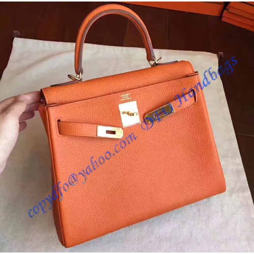 Hermes Kelly 32cm in Togo Leather Golden Hardware H5532G-orange