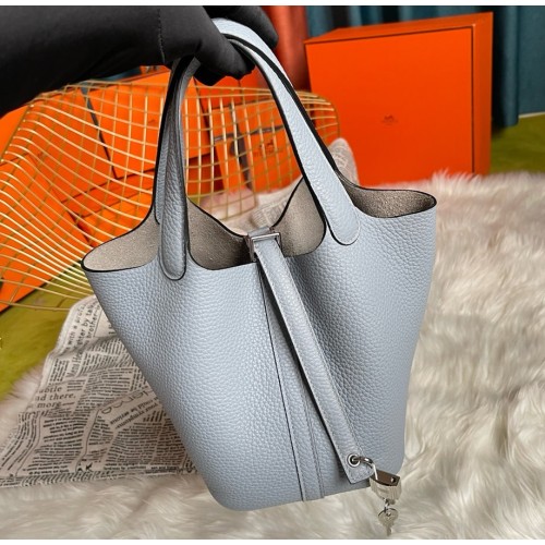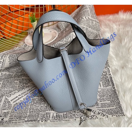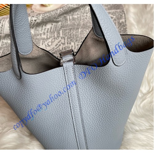 Hermes Picotin Lock 18 Palladium Hardware H2218W-bleu-lin