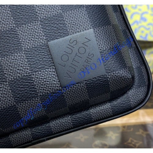The Avenue Slingbag is made from Damier Graphite canvas with a Louis Vuitton Paris leather patch on the front outside pocket, bringing a contemporary twist. The adjustable nylon strap can be attached to the D-ring on the right or left side of the bag. It is more sustainable than earlier models, thanks to its canvas strap and lining.