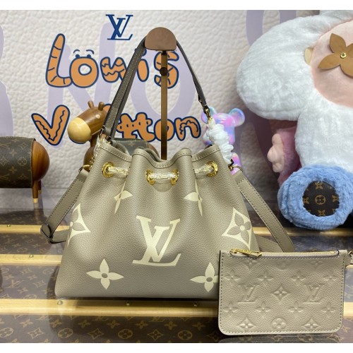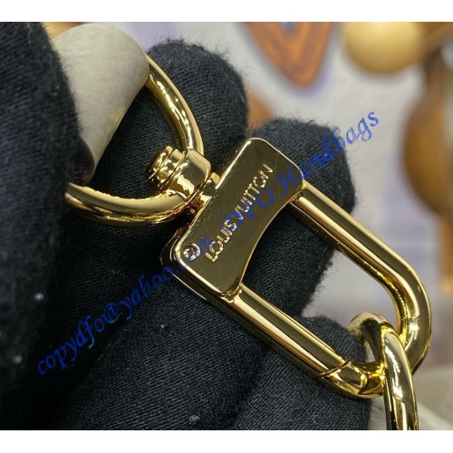 The LV Bundle bag is made from Monogram Empreinte leather with gold-color hardware, including on the chain drawstring. This “day to evening” bag’s sleek lines will match almost any summer outfit. It has two handles for fashionable hand carry as well as an adjustable and removable strap for comfortable cross-body and shoulder wear.