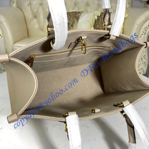 The OnTheGo MM is a medium-sized tote bag with two sets of handles, long and short, for hand and shoulder carry. Fashioned from supple grained cowhide leather, it features a Medium Monogram pattern, printed on and embossed into the leather. The spacious interior, which can hold a laptop and other work essentials, make it a versatile everyday bag.