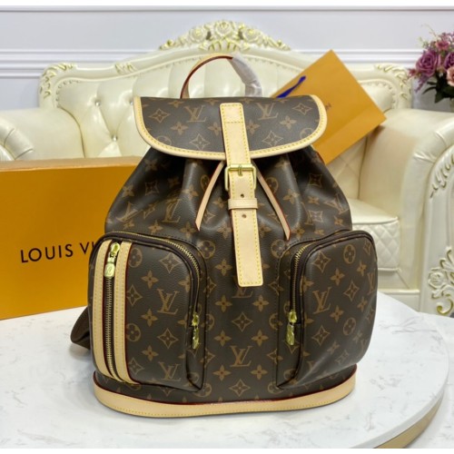 It is made of monogram canvas with natural cowhide trim. It has polished brass pieces, a flap closure, an adjustable textile strap, 2 large zippered front pockets, and a zippered side pocket. Inside the bag, there are textile lining and a D-ring (to attach charms, a pouch or key holder). It comes with a serial number, an authenticity card, a dustbag, a care booklet, and a LV tag.