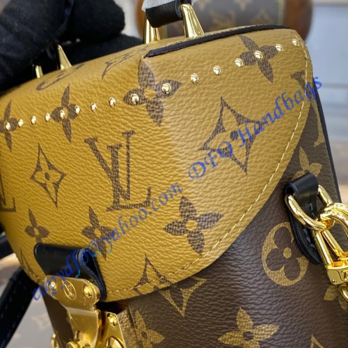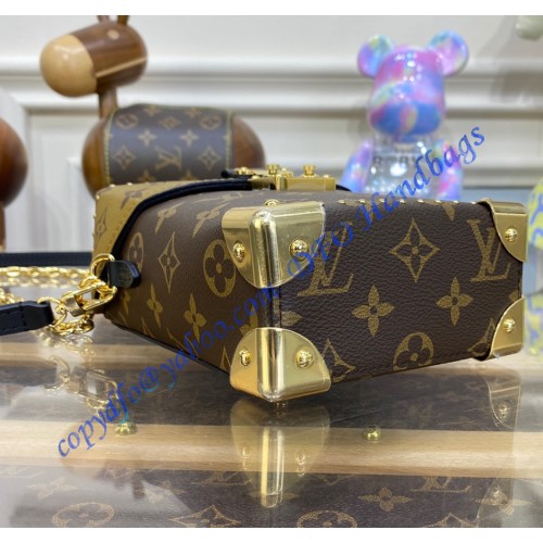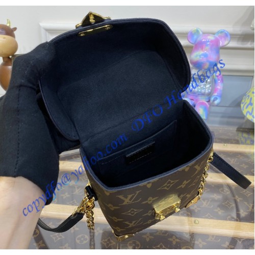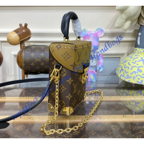 The Camera Box handbag combines all the Petite Malle’s signature details – S-lock, metallic corners, rivets, and a mix of Monogram and Monogram Reverse are all here – but on a modern shape. A thin gold-color chain brings a feminine touch to the bag while the pivoting top-handle adds a comfortable carry option.