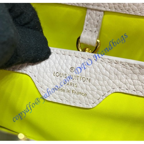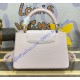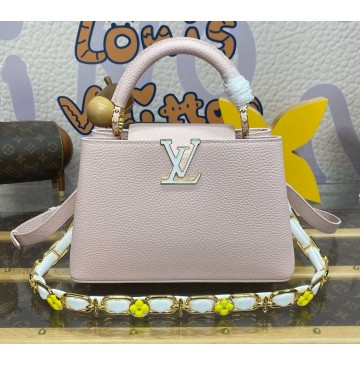 This season’s new Capucines BB Blossom Chain handbag makes an ultra-feminine fashion statement. The exquisite braided chain features golden links interlaced with soft, pastel calfskin, accented with alternating enameled and gold-finish Monogram Flowers. The LV signature is crafted from delicately colored enamel, lending this desirable piece a jewel-like touch.