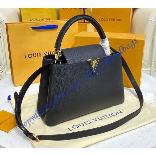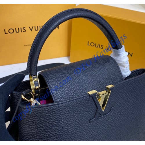 Named for the Rue des Capucines in Paris, where Louis Vuitton opened for business in 1854, the Capucines MM handbag was first introduced in 2013. Superbly crafted from full-grain Taurillon leather, it features a flap which can be worn two ways: outside to reveal a Monogram Flower, or inside to display the leather-wrapped LV Initials. Light enough to carry all day long, by hand, on the shoulder or worn cross-body with the detachable strap.