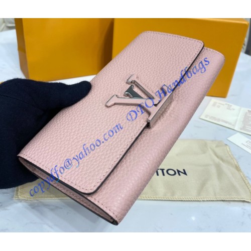 Crafted in supple Taurillon leather with a leather-covered LV signature, this elegant wallet is inspired by the emblematic Capucines line. Sensorial yet functional, it is still large enough to fit all your daily essentials.