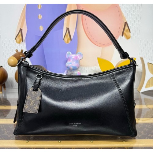 The LV Vibe collection presents this Carryall East West, which artfully blends heritage details with a contemporary silhouette. It is made from supple lamb leather with signature Monogram trims, including a name tag that pays tribute to the House’s archival trunks. Sized to fit everyday essentials, it has a removable strap and can be worn crossbody, over one shoulder or carried by hand.