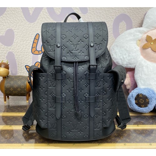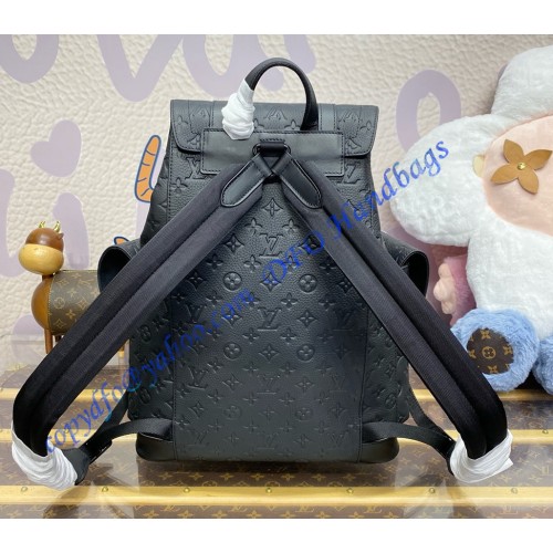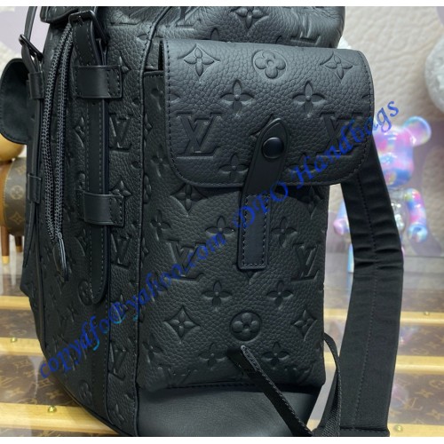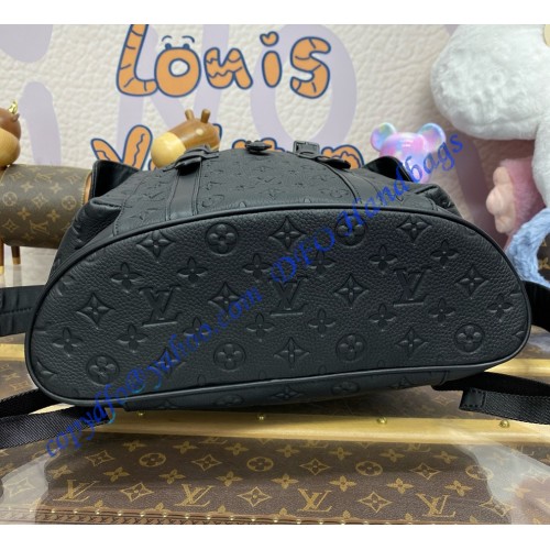 The Christopher MM backpack is a mid-sized backpack with two exterior side pockets and numerous functional pockets inside. Fashioned from Taurillon leather with an embossed Monogram motif, it is finished with black leather straps and matte-black hardware. A drawstring and press-stud closure keeps what’s inside secure.