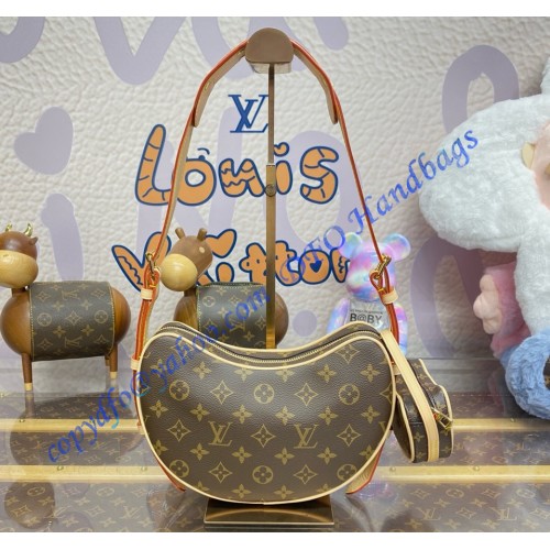 The Croissant MM handbag is made from Monogram coated canvas with natural cowhide-leather trim and comes with an adorable miniature version of the same bag. Thanks to its removable and adjustable strap, this versatile bag can be worn cross-body, short- or long-shoulder, and with or without the matching mini bag.
