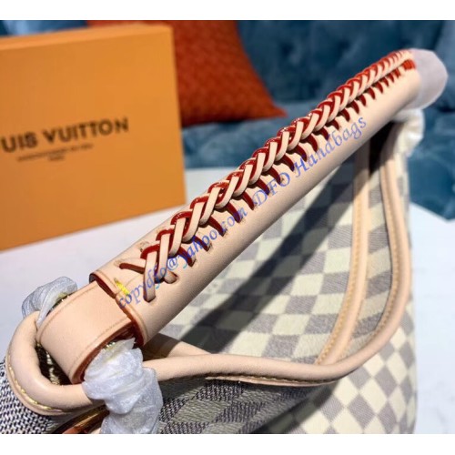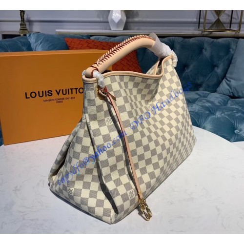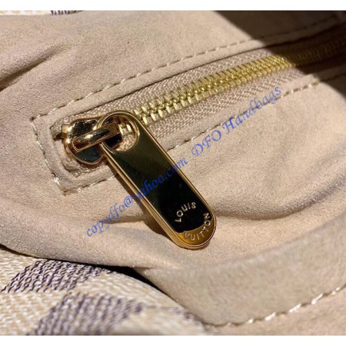 The Artsy MM looks fresh and feminine in supple Damier Azur canvas. Adorned with shiny golden brass and a chic bag charm, its exquisite handcrafted leather handle adds a luxurious crowning touch.