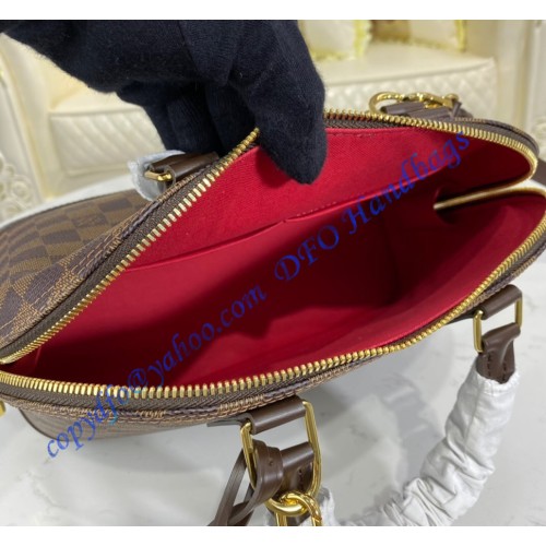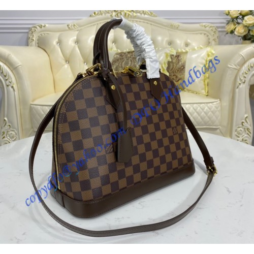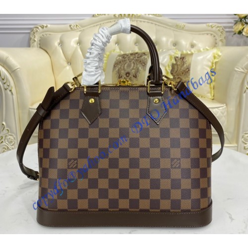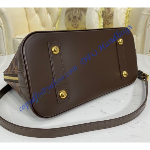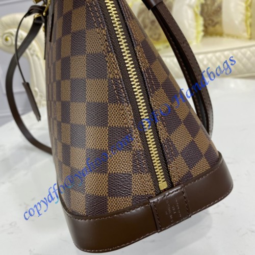 A timeless House icon, the Alma PM handbag is perfect for every day. Its structured lines recall the Art Deco original, designed in 1934 and named for the Alma Bridge in Paris. Crafted from signature Damier Ebene canvas, with hand-stitched Toron handles, natural cowhide trim and gleaming golden hardware, this elegant model can be carried by hand or on the elbow.