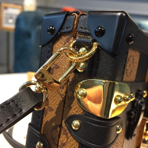 The Damier Tressage Petite Malle handbag is an elaborately crafted design paying tribute to Louis Vuitton's heritage. Monogram or Monogram Reverse on black version canvas and supple calf leather are interwoven to create a graphic check pattern evoking Damier canvas. This miniature interpretation of one of the House's historic trunks is secured by an iconic S-lock clasp.