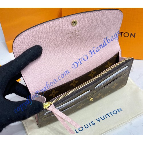 Proving that functionality and beautiful design can go together, the Emilie Wallet is elegance itself in supple Monogram canvas with a fresh lining color. Numerous pockets and an attractive shape make it irresistible.
