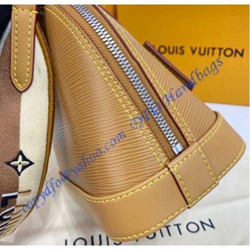 One of the House’s most recognizable bags, the adorable Alma BB handbag gets a sporty makeover thanks to a new Jacquard strap. The fashionably wide strap is embroidered with Louis Vuitton on one side and Monogram Blossoms on the other, and features delicate stitching along its edges. Made from colorful Epi leather, this bag will definitely turn heads.