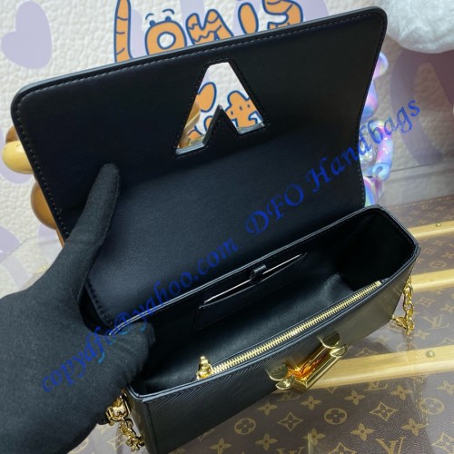 With its elegant, elongated shape, the Twist West handbag offers a cool new perspective on the House icon. Fashioned from Epi leather in an array of modern hues, it is signed with the beautifully crafted LV Twist lock. Sized to fit essential belongings, the bag adapts to a variety of carry styles thanks to its removable strap and chain.