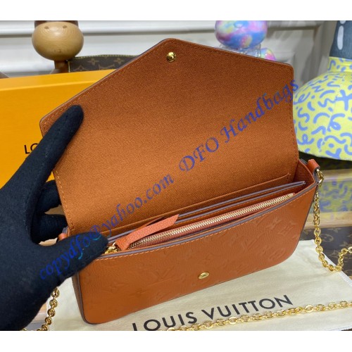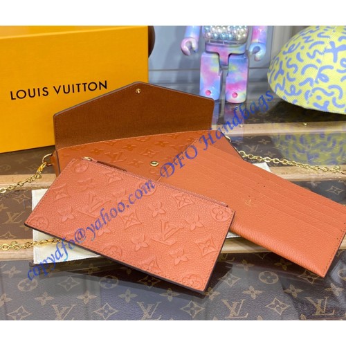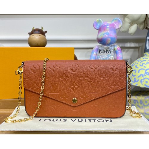 The Félicie Pochette is crafted from Monogram Empreinte leather, embossed with Louis Vuitton's signature Monogram pattern. Designed to adapt to modern lifestyles, this envelope-style pouch contains a spacious compartment with two removable pockets: one zipped, one with card slots. It can also be carried in different ways thanks to a removable chain.