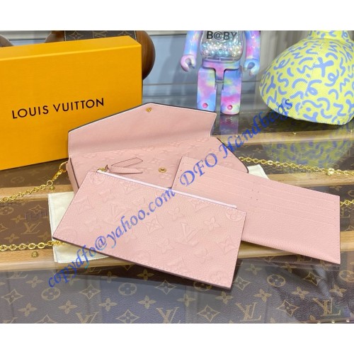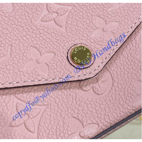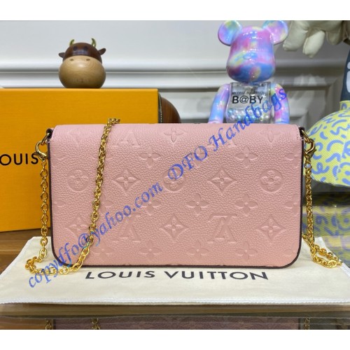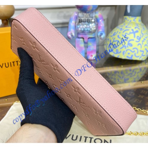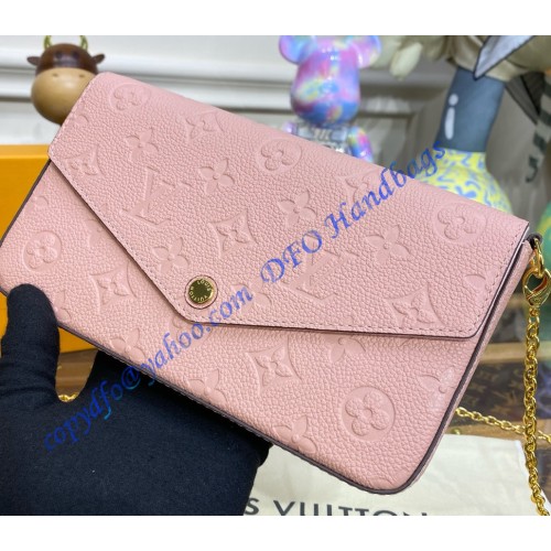 The Félicie Pochette is crafted from Monogram Empreinte leather, embossed with Louis Vuitton's signature Monogram pattern. Designed to adapt to modern lifestyles, this envelope-style pouch contains a spacious compartment with two removable pockets: one zipped, one with card slots. It can also be carried in different ways thanks to a removable chain.