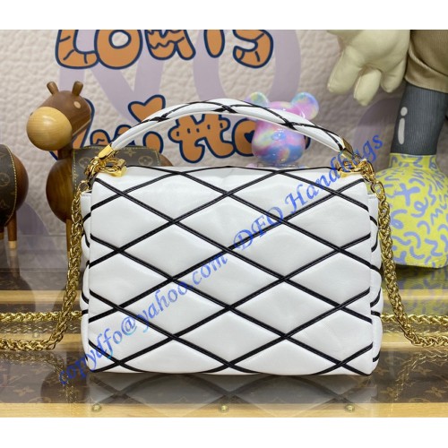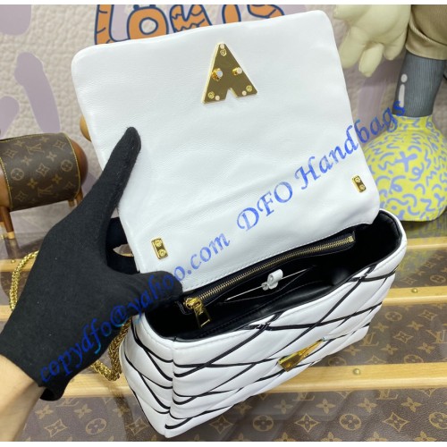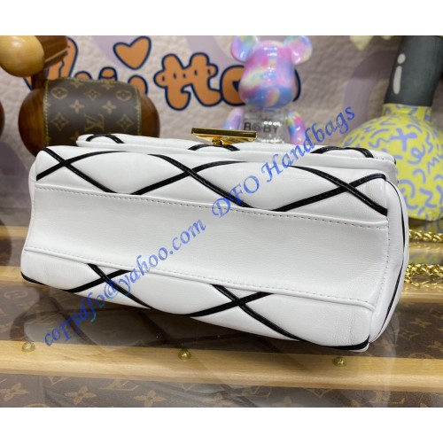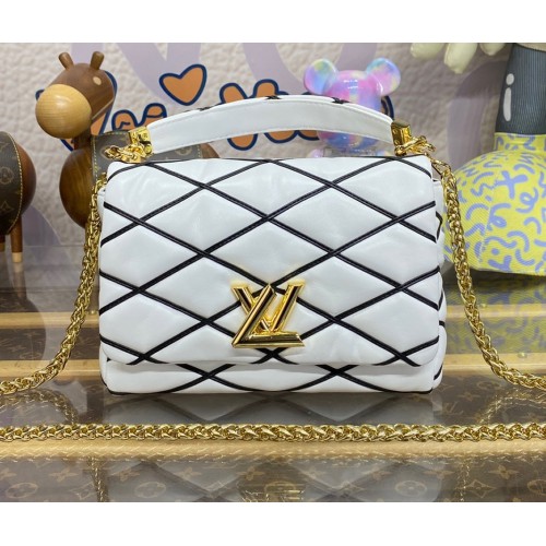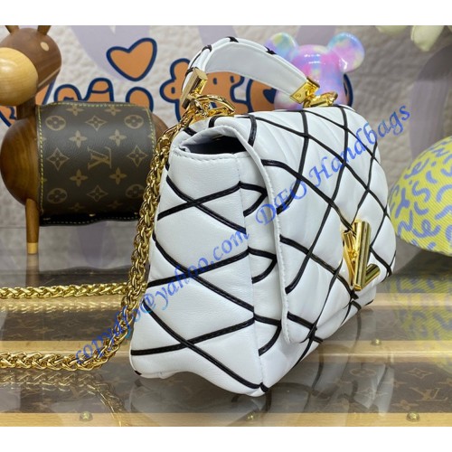 Fashioned from soft, luxurious lambskin, the GO-14 MM bag features the signature quilted pattern designed for the Maison’s historic trunks. Accented with a gleaming golden LV Twist lock, this versatile model can be carried by the top handle or worn on its sliding chain. Alternately, the top handle can also be converted into a leather pad on the chain for a comfortable shoulder or crossbody carry.