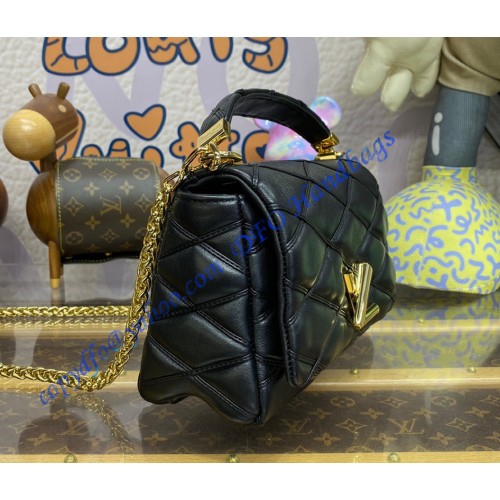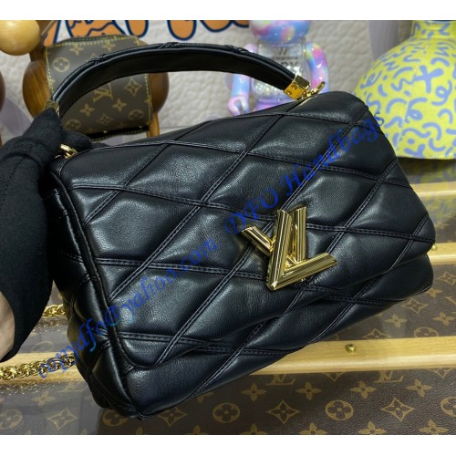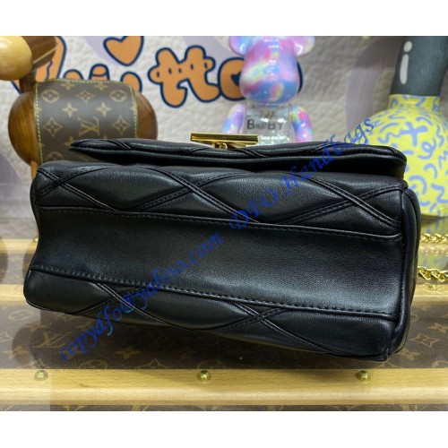 Fashioned from soft, luxurious lambskin, the GO-14 MM bag features the signature quilted pattern designed for the Maison’s historic trunks. Accented with a gleaming golden LV Twist lock, this versatile model can be carried by the top handle or worn on its sliding chain. Alternately, the top handle can also be converted into a leather pad on the chain for a comfortable shoulder or crossbody carry.