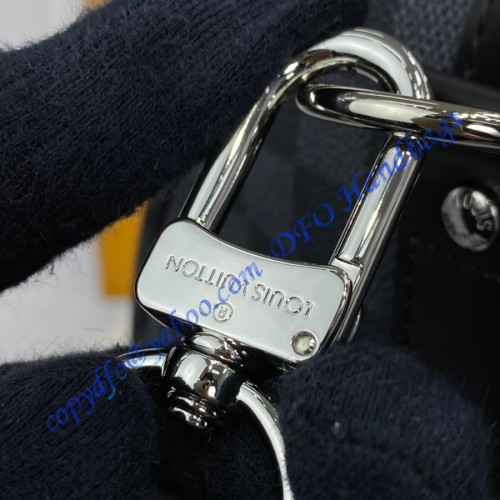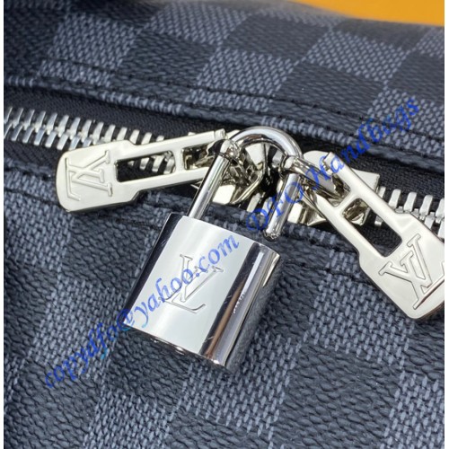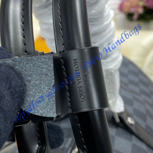 It is an urban travel bag in a revisited classic. It is not only stylish but also resistant and light. Hand held with a removable shoulder strap makes it extremely practical to use. It is made of damier graphite canvas with leather trim. It has silver brass hardware, a double zipper closure, rounded handles with handle attachment, a removable and adjustable strap with a shoulder pad, and a removable ID holder. It has cotton interior lining. It is a 99.9% mirror copy of the authentic Louis Vuitton bag.